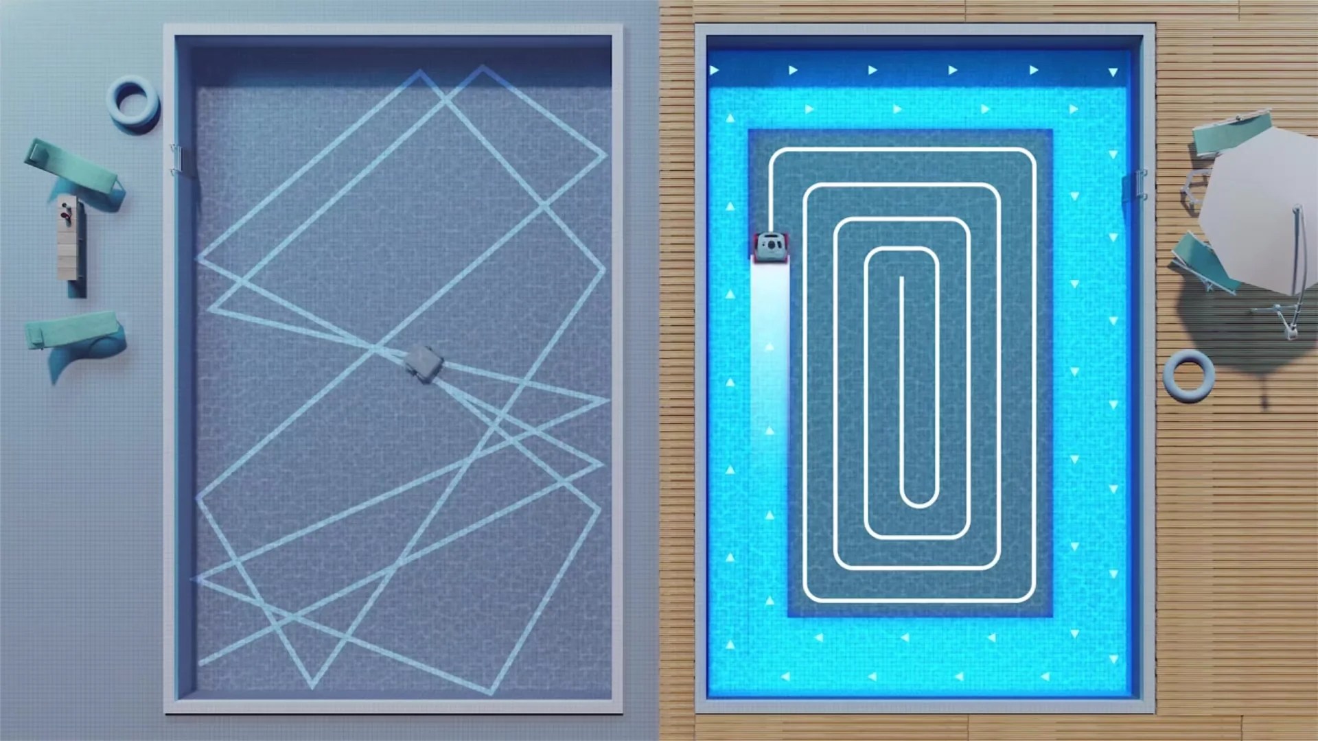 Uses an S-shaped path for the fastest pool bottom cleaning, completing the task in just 1 hour.
